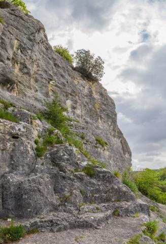 Les boisements, implantés sur un substrat calcaire compact, sont largement composées de chênes verts ou pubescents. Des pelouses naturelles, appelées "chaumes" dans la région, sont présentes sur le plateau ou sur les pentes exposées au sud. Elles constituent, avec les pelouses rases colonisant la falaise, plusieurs habitats d'intérêt communautaire. N'étant plus pâturées, les chaumes sont progressivement envahies par les buissons.